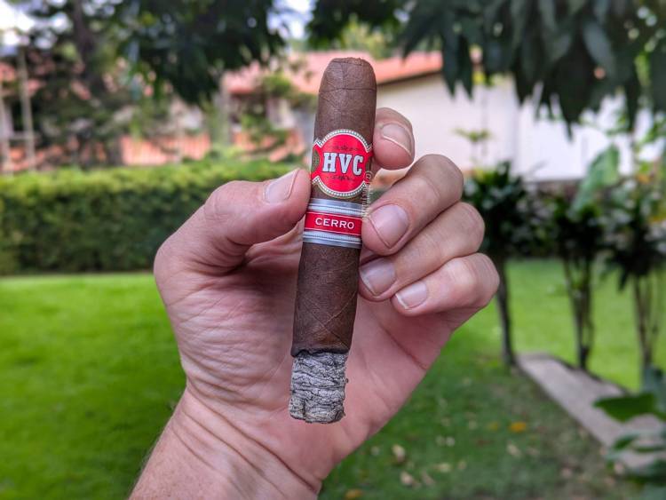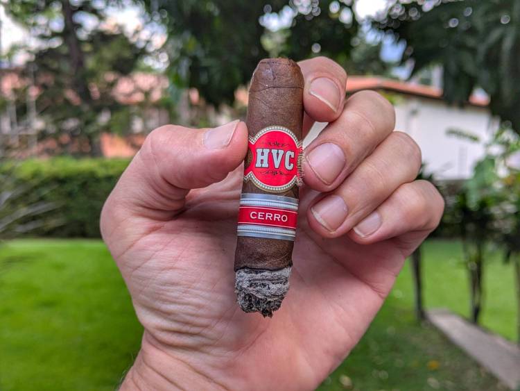 A menudo pienso que conozco una marca, hasta que comienzo a probar sus productos y a descubrirlos, solo para darme cuenta eventualmente que ese producto que estoy descubriendo y que es nuevo para mí, en verdad tiene bastante tiempo en el mercado y ya tiene sus fanáticos y todo. Es el caso de este Cerro Maduro, que es básicamente el mismo Cerro de la marca, pero con capa San Andrés mexicana. Esta es una línea que existe desde 2011 y desde el lanzamiento de la marca y si bien HVC se refiere a Havana City (La Habana), Cerro es una urbanización dentro de la capital. En este caso lo estoy probando en Robusto 5 x 50, pero está disponible en Rothschild, Toro y Gordo también, aunque cabe destacar que la marca no le pone nombres a ninguna de las vitolas, sino solamente la medida.