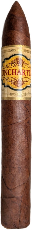 Entre la inmensa variedad de tabacos hechos por AJ Fernandez, creo que este año he tenido la oportunidad de reseñar varios poco conocidos. Entre los menos conocidos incluyo este llamado Uncharted, una edición exclusiva hecha para JR Cigars y que salió a la venta aproximadamente en 2015. Se trata de un cigarro que estuvo disponible en varias vitolas y que hoy tengo la oportunidad de probar en Belicoso, con una capa Habano ecuatoriana, sobre capote San Andrés mexicano y tripas de Nicaragua (75%) y Honduras (25%). Aunque su lanzamiento fue aproximadamente en 2015, existió hasta 2022, por lo menos. Su precio inicial era de unos $4 por unidad, pero para el final de su producción se podía conseguir en $2. No me queda claro si sigue disponible, pues la página web de JR Cigars está bloqueada en Venezuela.