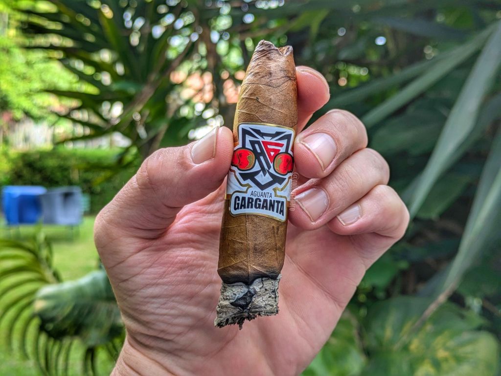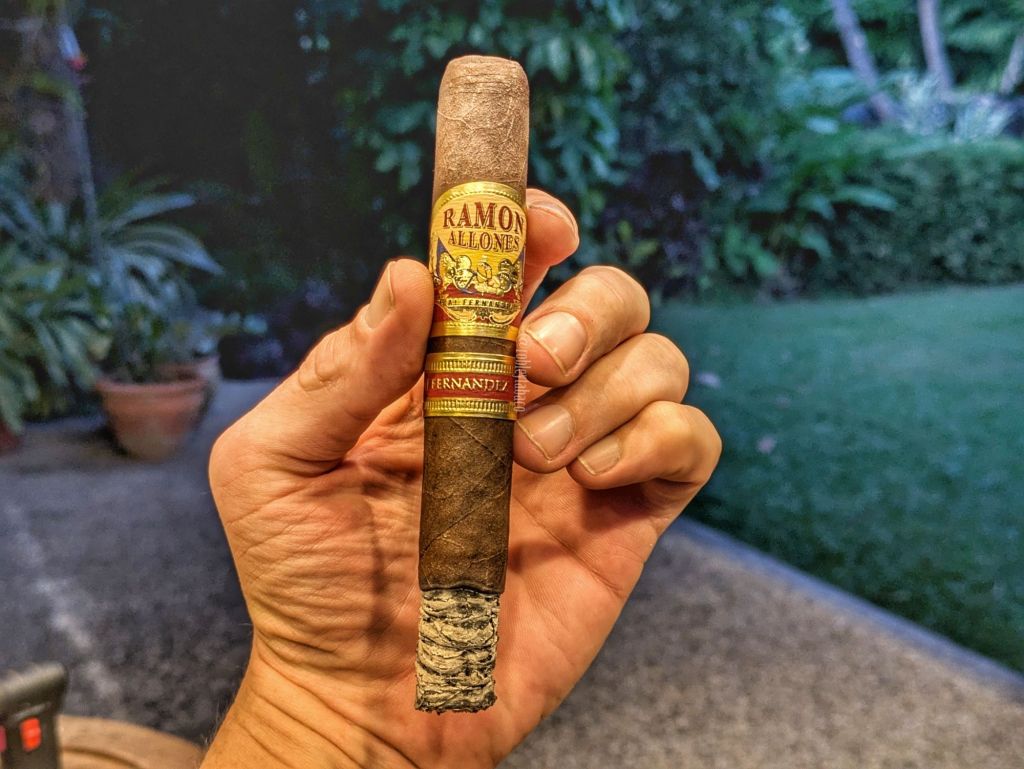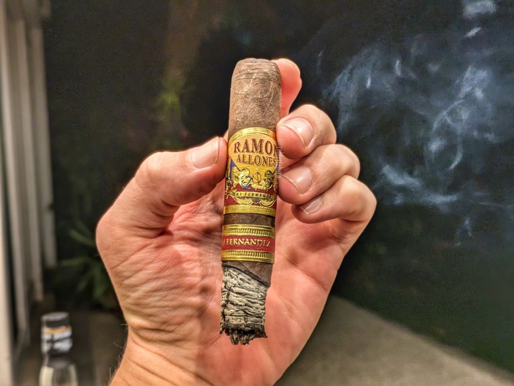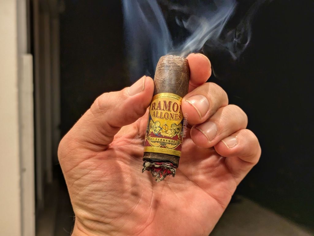 La mermelada en el paladar se siente más pegajosa y cremosa, pero menos frutal, como si se tratase más bien de un almíbar o jarabe simple, pero las notas de madera alcanzan el mismo nivel y son lo más destacado de este último tercio, aunque esa pimienta del retrogusto se vuelve más insistente en cada calada y aumenta la fortaleza a media-alta, junto con la intensidad que se encuentra en el mismo punto. El punto negativo es que esas notas cremosas parecen haber estado atadas a la nota frutal y al desaparecer una, se lleva a la otra. En el último tercio sí llega un momento que el cigarro se siente muy suave y se calienta cada vez más, por lo que lo dejo morir con dignidad cuando en teoría le podría haber quedad un poco más de fumada, pero corría el riesgo que simplemente se apagara, aunque el tiro iba muy bien. Me tomó una hora y 35 minutos fumarlo completo.