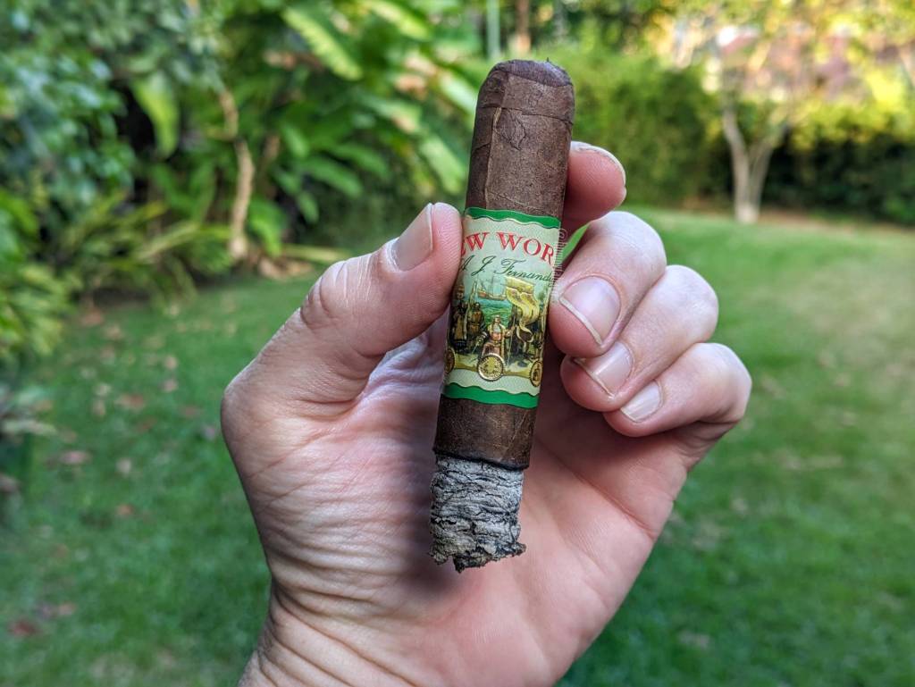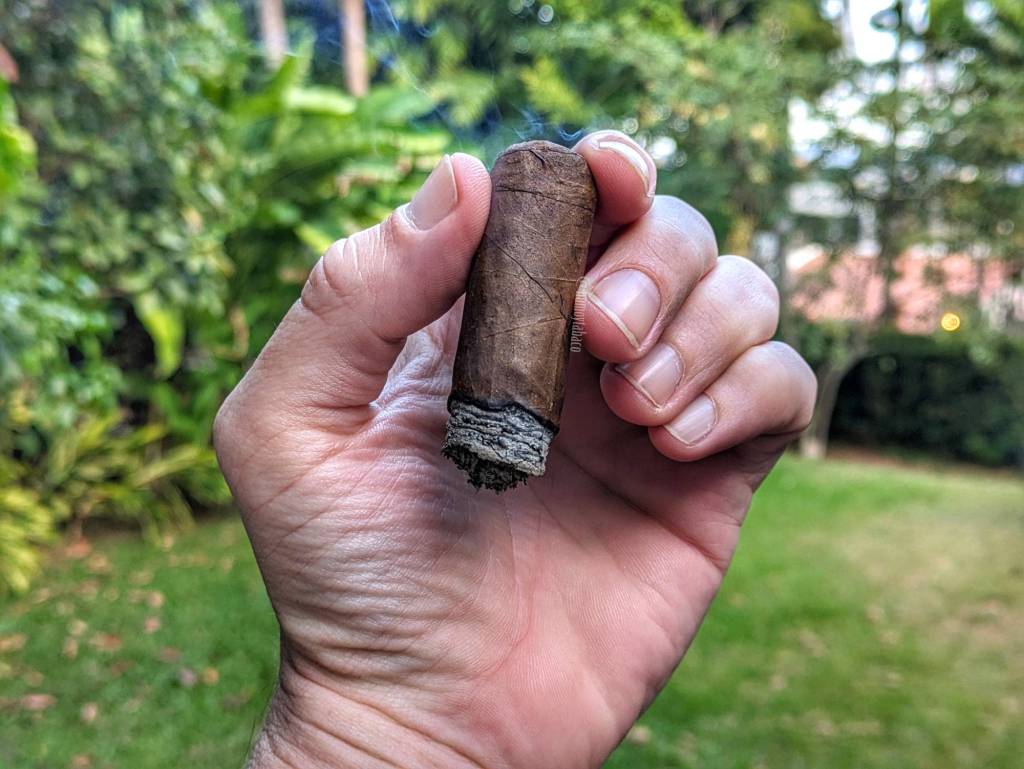 El último tercio podría ser más agradable si la fumada no fuese tan astringente. En cada calada siento una sequedad en la boca que no me gusta en lo absoluto y que, lamentablemente, afecta a los sabores también. El de chocolate chip es el dominante, mientras que el café ya desapareció. Podría asumir que la garganta seca y la picazón que le acompaña es por un sabor de pimienta en el cigarro, pero creo que es simplemente un tema de edad. El retrogusto sigue siendo de caramelo, pero se siente mucho más suave y definitivamente menos intenso. Con esta tendencia el Freedom se mantiene hasta que le doy la última calada, alrededor de una hora y 20 minutos después de encenderlo, a donde llega con una fortaleza media-baja y una intensidad similar.