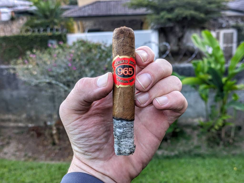 Comenzamos bien, aunque algo «muteado», quizá por la edad del cigarro o porque es así. Los sabores son de café y chocolate, dominantes pero no necesariamente abundantes de sabor. El retrogusto es de caramelo con notas ligeramente picantes, y así es como se caracteriza este primer tercio, donde estos sabores afortunadamente van aumentando, pero nunca pasan de tener una intensidad media-baja, con una fortaleza baja. Quema relativamente bien, pues la quemada tiene la tendencia a hacerse diagonal, pero al menos no da problemas de combustión. Hacia el final del tercio, se sienten notas saladas en el caramelo, que es algo que para la época del cigarro no estaba tan de moda como hoy, pero que no dejan de ser interesantes.