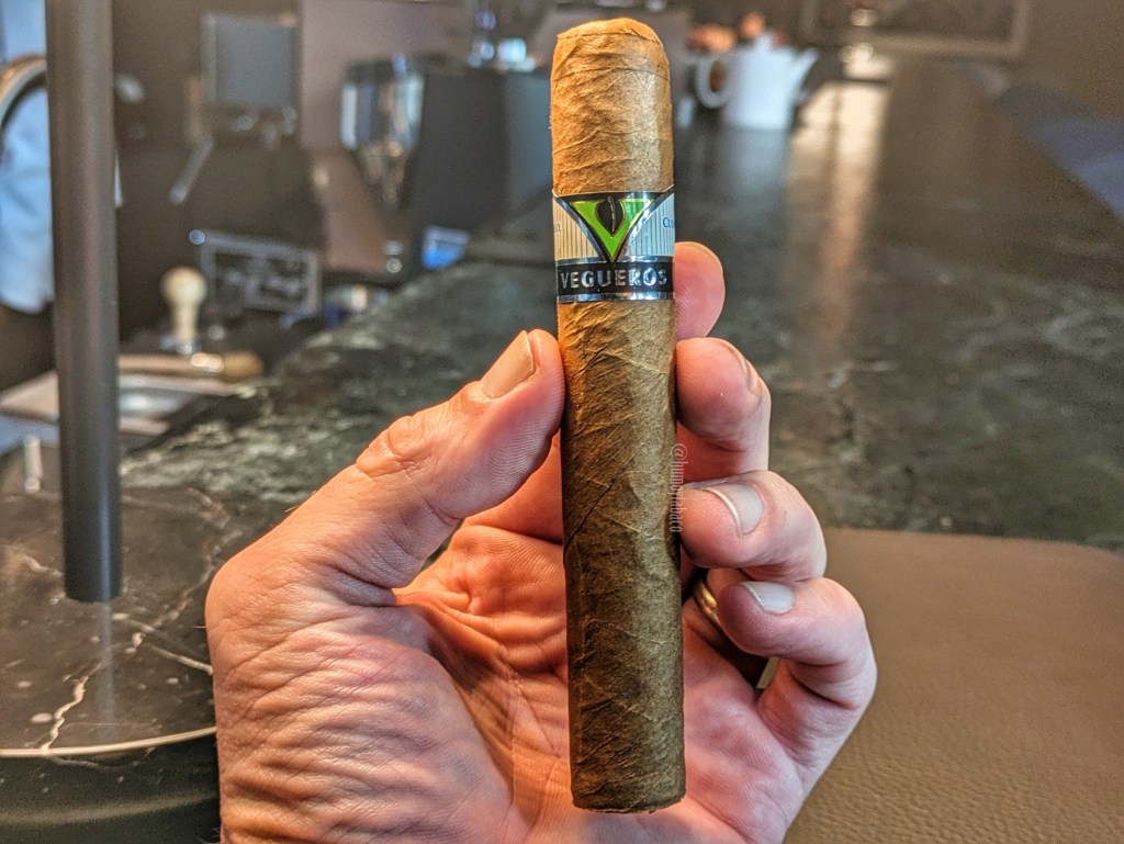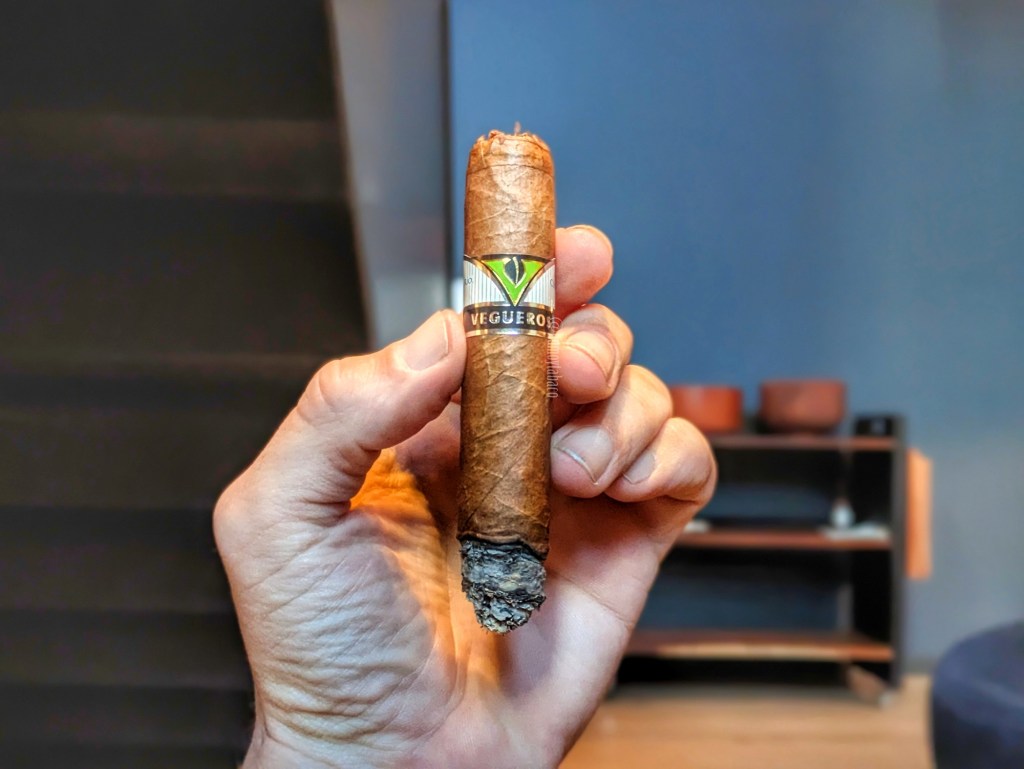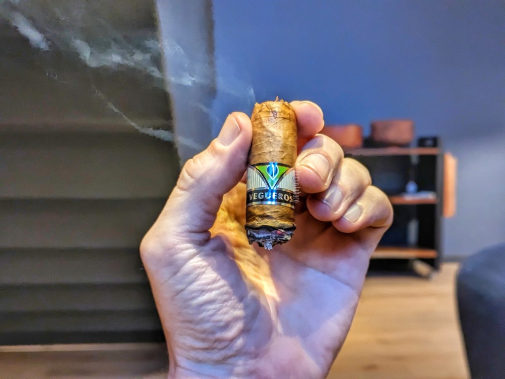 Entre los dedos se siente mucho más grande de lo que se ve en las imágenes, también porque existen muchos cigarros con formas en este estilo y todos tienden a ser pequeños, con contadas excepciones. Pero este, aunque tiene un cepo de 60, que no es pequeño, tiene un largo de 5 3/8, que es algo más grande que un robusto. La capa está llena de irregularidades de tamaño, pero muy pocas de color y un brillo notable. Los aromas de la capa incluyen manzana, cuero, chocolate y café, mientras que en la calada en frío se aprecia más café espresso, dulce y cítrico.