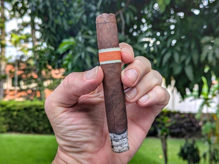 En el segundo tercio la quemada no empeoró pero incluso se mantuvo recta durante un rato. Curiosamente, parecía lograr una buena quemada cuando las caladas eran constantes, y no tanto cuando las reducía a una vez por minuto o algo así. Los sabores tampoco varían mucho y aunque sí se sintió un poco más fuerte, no llegó a ser super en ningún momento. Cuando le quité la anilla, que debe haber sido más o menos en el punto medio, la nota de chocolate comenzó a sentirse como un chocolate con leche y no tanto como uno negro, pero en realidad no hubo un gran cambio y en el retrogusto la nota picante ya adquirió un matiz de pimienta no invasiva.
