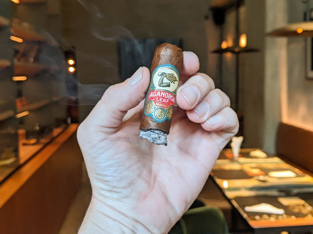Muy para mi sorpresa, la fortaleza e intensidad del Añejo fueron my respetables y aunque siento que pudo haber sido algo más de lo que fue, no estoy insatisfecho con la experiencia. Pareciera que la marca no se limitó a hacer la misma liga con un poco más de tabaco, sino que lo pensaron bien a la hora de hacer un cepo mayor. No se trata de una fumada compleja y por $8 por unidad no esperaría que lo fuera, pero sí fue un cigarro interesante al que no me costaba nada regresar a probar con regularidad. Precisamente, esa tendencia a media a suave de la primera mitad pueden no ser la ideal para muchos fumadores, especialmente los que eligen el cigarro por el color de la capa y esperan una fumada de fortaleza moderada. Pero entre los 6 x 60 que me han gustado, este Añejo se encuentra bien posicionado. Un dato interesante es que cuando leí Añejo en la anilla, lo primero que pensé era que se trataba de una capa madura, precisamente por estar añejada. Pero es de capa Habano y eso tiene propiedades y perfiles de sabores distintos, que al menos a mí me gustan mucho.