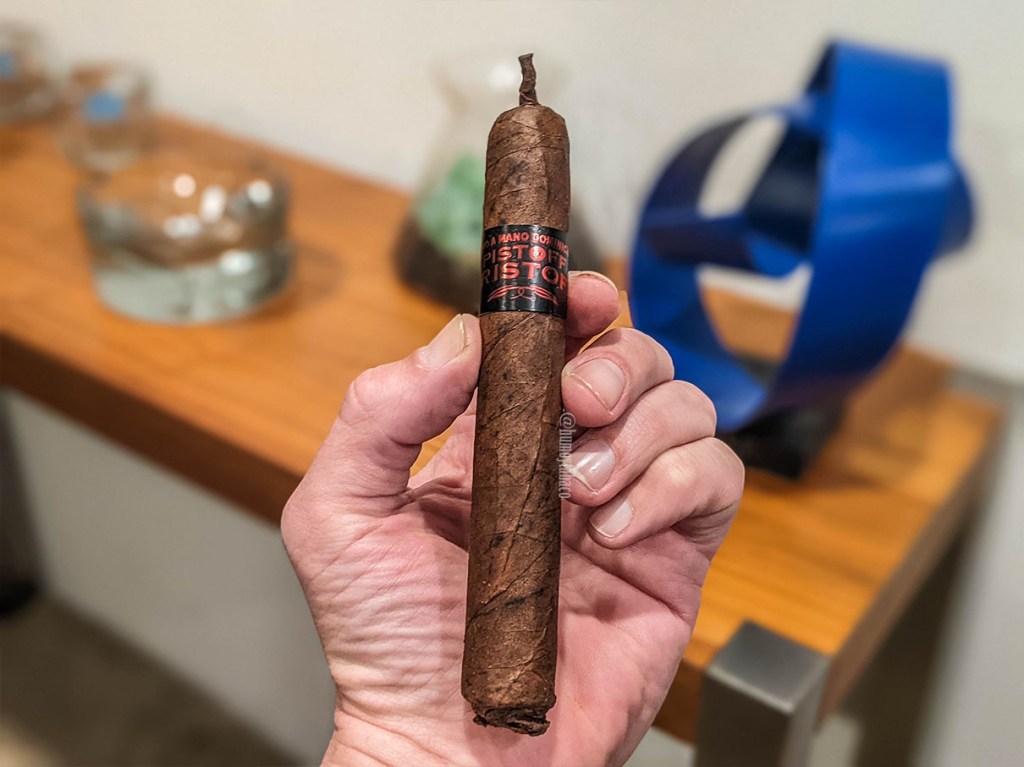 Pero el ego de Tetens no se limita a su página web. La marca lleva su nombre y tiene no menos de siete líneas distintas, en las que todas las anillas llevan fotos de él en distintos puntos de su vida. Sin embargo, una de las razones por las que podremos no haber oído de Lars Tetens es que fue hasta principios de la década de 2000 que su nombre tuvo alguna relevancia y durante los siguientes 20 años su nombre quedó más o menos en la historia. Pero en 2019 logró una alianza con Alan Rubin de Alec Bradley Cigars para distribuir sus productos y es así como llegó a mis manos… bueno, y que mi distribuidor ha tenido una campaña bien agresiva con los precios, así que decidí probarlos. Para empezar, no empezamos bien porque nada en la anilla ni en la descripción del producto lo marca como un cigarro saborizado, salvo el hecho que no identifica ninguna de las hojas y que son marcadas como «condicionadas», aunque ya he aprendido a obviar cuando dicen saborizadas o infusionadas, pues condicionadas no me daba nada. Pero para ser saborizado, en frío el cigarro no tiene aromas de un cigarro saborizado/infusionado, con toques de paja mojada en la capa y algo que se asemeja a frutos secos. En el pie se siente un poco más falso, con notas intensas de frutos secos, frutos rojos y lo que puedo definir como pasta de almendras. Finalmente lo pico y la calada en frío presenta más o menos los mismos toques de la tripa, pero con un añadido de chocolate.