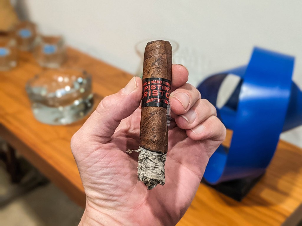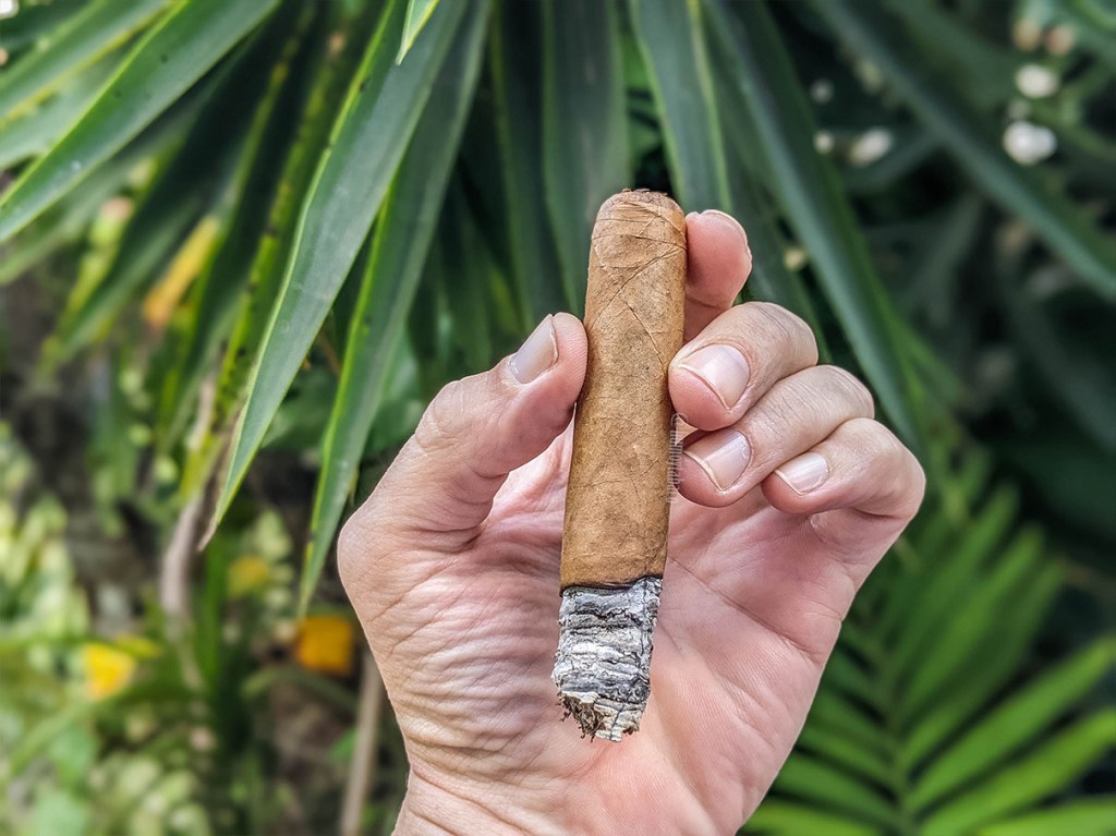 No me queda claro si este cigarro tiene tripa corta o tripa larga, pero por las dimensiones diría que es tripa larga. Hasta donde tengo entendido, no es fácil hacer cigarros de estas dimensiones en tripa corta y en realidad no me quedan trocitos de tabaco en cada calada. Sí me impresiona que la página del distribuidor y cualquier información al respecto lo marca como un cigarro de fortaleza media, cuando incluso bien adentrado en el segundo tercio se sigue sintiendo como algo muy suave. No hay sabores nuevos pero confieso que para ser un cigarro saborizado, no hay una gran influencia de ellos. No obstante, para ser un cigarro de tripa larga, tiene muy poca evolución y tanto intensidad como fortaleza se mantienen igual.