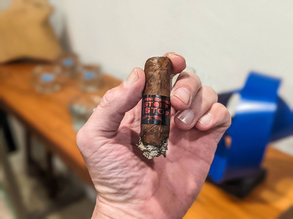 En el último tercio el único cambio significativo es que se ha hecho un tanto más picante y esto puede ser porque se han concentrado los sabores al final, que es nuevamente una tendencia de cigarros no saborizados. En los ACID, por ejemplo, me pasaba que la intensidad era casi la misma durante toda la fumada. En realidad es algo que estoy detallando, porque hay muy poco que destacar del cigarro más allá de eso y me pica un poco que durante una hora y 20 minutos no haya podido especificar mucho más. Los sabores «condicionados» del cigarro realmente son dominantes y tienden a cubrir cualquier matiz del tabaco, con una intensidad media-baja y una fortaleza baja. Al cabo de ese tiempo y feliz de haberlo cumplido y llegado al final del Steam Punk, lo dejo a un lado.