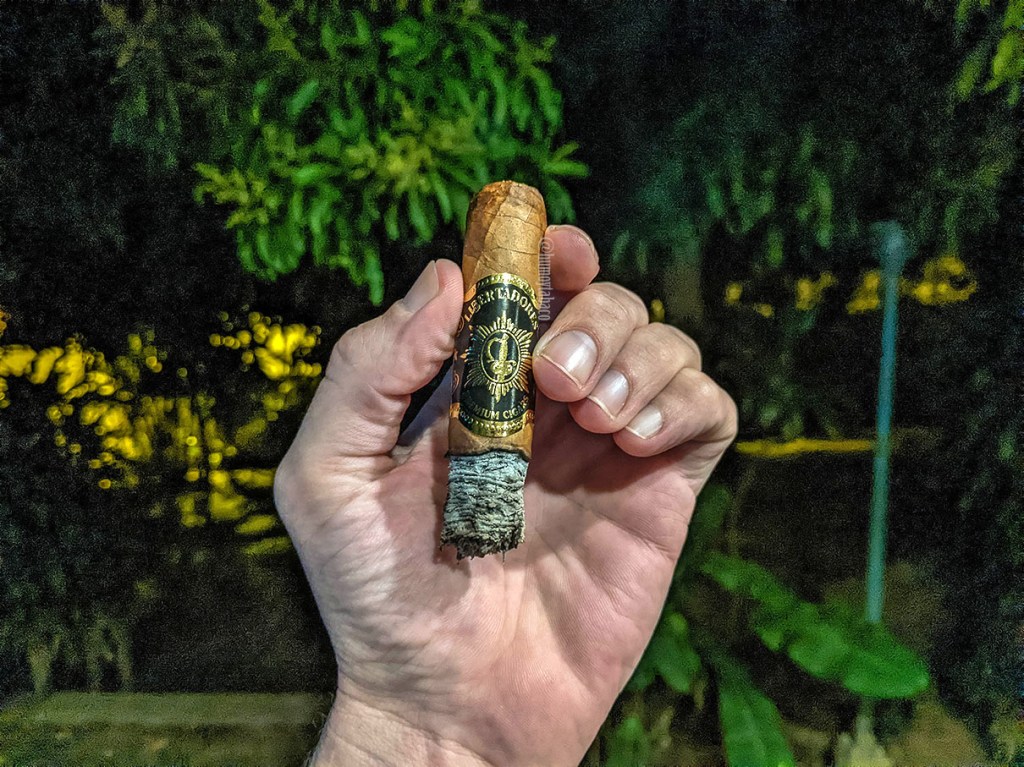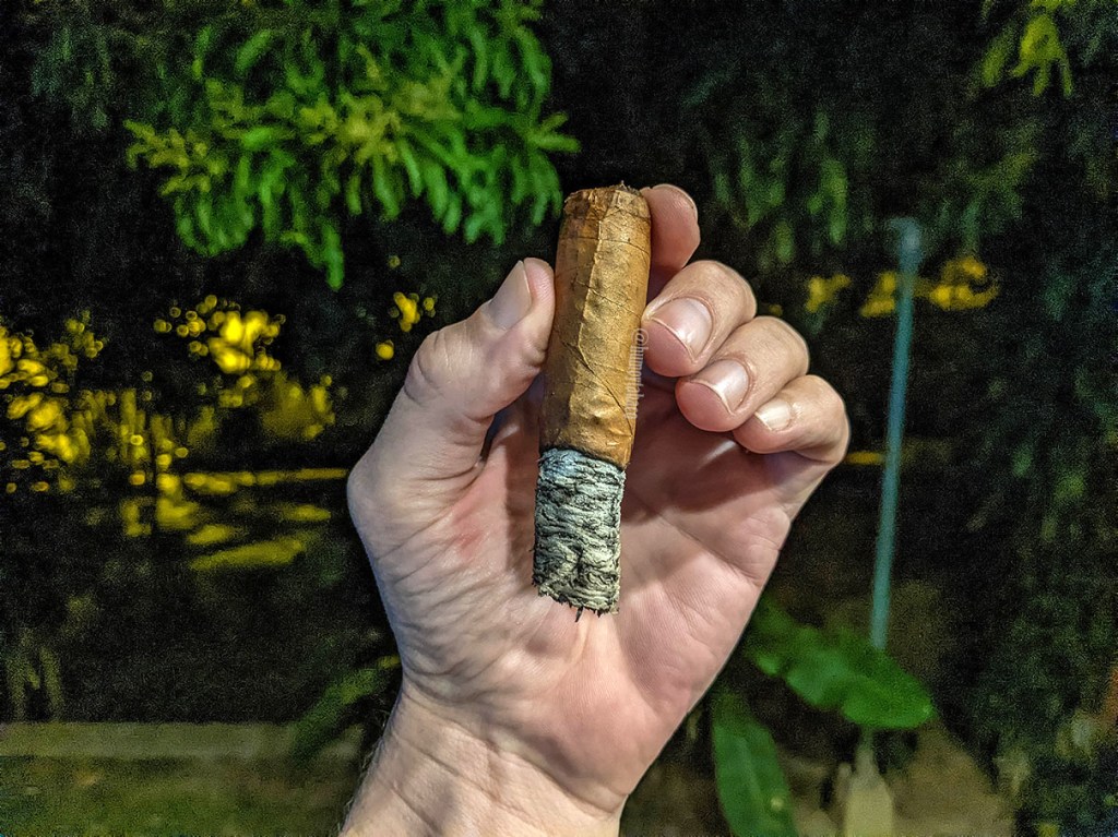 El sabor de caramelo es el que toma la nota dominante en el último tercio, más que nada porque la pimienta parece desaparecer por completo, mientras que los sabores de nueces y madera se mantienen durante largo rato en esta sección final. En términos de construcción sí comienza a perder facultades, en gran parte por el gran cepo y sección más fina del cigarro, que simplemente no parecen coordinar, pero los sabores parecen mantenerse en buena forma, incluso si el cigarro se calienta de más. Al final, luego de una hora y 5 minutos de fumada, es esa temperatura que va agarrando el cigarro la que me obliga a dejarlo de lado, pues también tiene que ver que la quemada comienza a desviarse por ese mismo calor desmesurado, pero en realidad el Mal.Cri.Ao ya dio lo que iba a dar.
