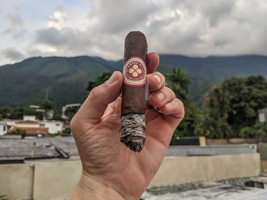 El Colorado Oscuro comienza con notas fuertes desde el inicio, destacando pimienta tanto en la nariz como en los labios, pan tostado, cuero y una nota vegetal como de pimientos, pero todos estos son arropados por una sensación dulce que domina y combina todos los anteriores. El humo no es muy abundante, al menos no en el primer tercio, pero la sensación en boca es como de miel. El anillo de combustión se comporta de maravilla, la ceniza es blanca y bastante sólida y le tomó casi todo el tercio y un poquito más caerse. Por cierto, que me tomó unos 35 minutos superar ese primer tercio.