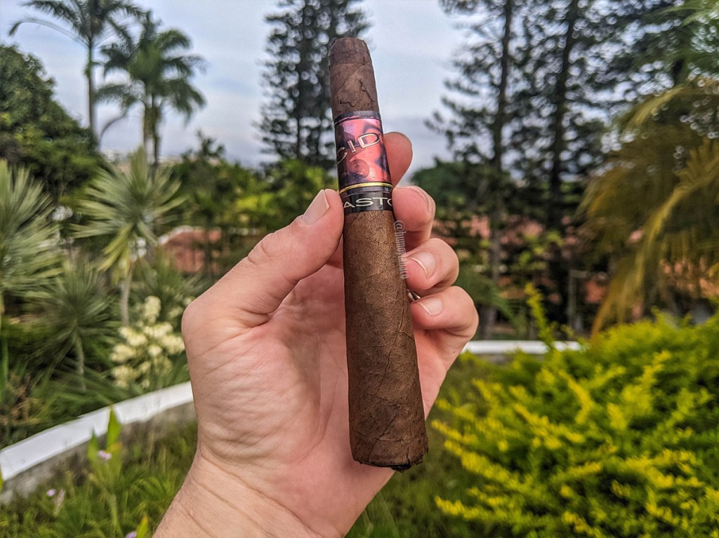 El cigarro fue enviado por un seguidor de mi Instagram. La capa oleosa de Las Calaveras 2020 proviene de Ecuador y es Habano oscuro, con un muy ligero box press que solo se nota si detallas el cigarro. La anilla en el pie es una nueva adición que creo que comenzó en el 2019, que casualmente fue el cigarro que menos me gustó de los que he probado. Hasta ahora he podido fumar el 2017, 2018, 2019 y ahora este 2020. La capa tiene aromas a cuero, tierra, nibs de cacao, granos de café y nuez moscada, mientras que la calada en frío, luego de quitarle esa anilla, se sienten aromas a cuero, tierra, cáscara de maní y melaza. Quizá lo que más me llama la atención de este cigarro es que es la versión con cepo 48, así que estoy casi seguro que voy a tener un buen sabor concentrado, cosa que no es tan común en cigarros de cepo mayor.