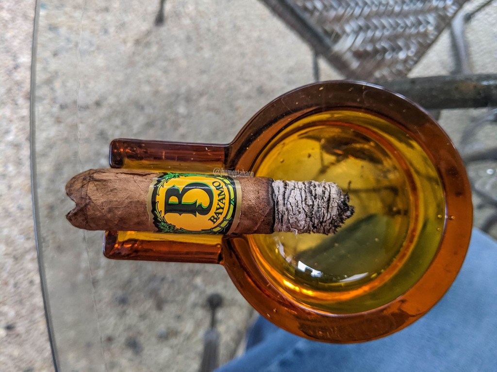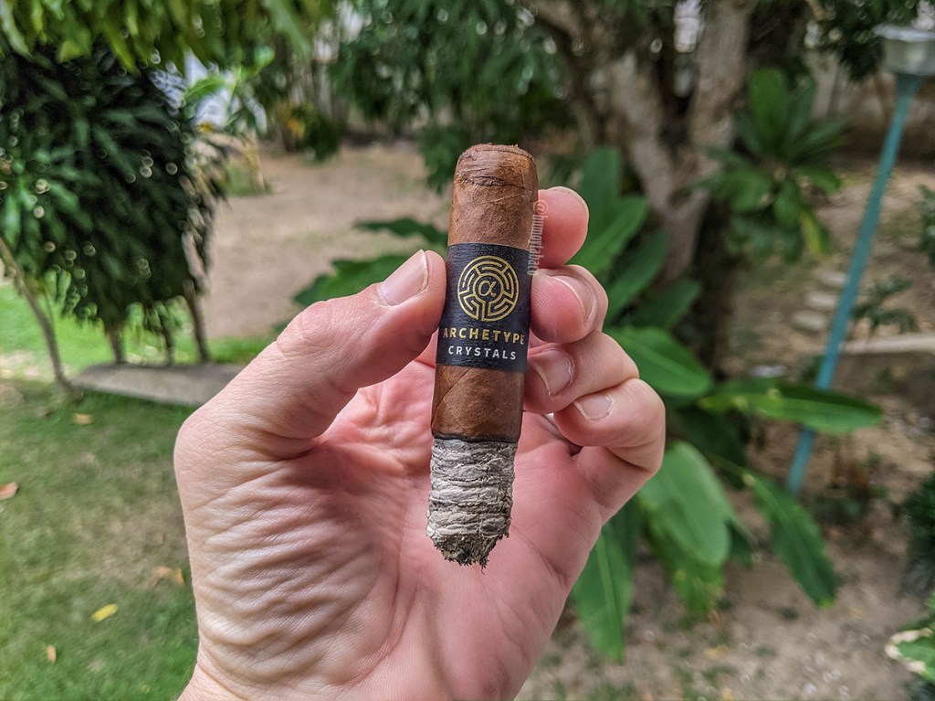 Ese sabor de tierra se vuelve a tierra mojada en el último tercio, lo que casualmente hace que el cigarro se sienta como más «mojado», o quizá es el hecho que le cuesta mantenerse encendido regularmente y eso afecta la quemada así como los sabores. Estos tienen a esa tierra mojada como principal, junto con la crema que ya había sentido y el café, pero incluye también una nota de pan tostado, cuero y la pimienta prácticamente desapareció. Al final, me toma una hora y cuarto llegar al final de este cigarro, que no quería terminar pues estaba en un ambiente muy agradable en casa de un amigo, pero ya él había terminado de fumar y estaba diciendo todo lo que tenía que hacer después. Tomé eso como indicación que debía buscar un nuevo destino.