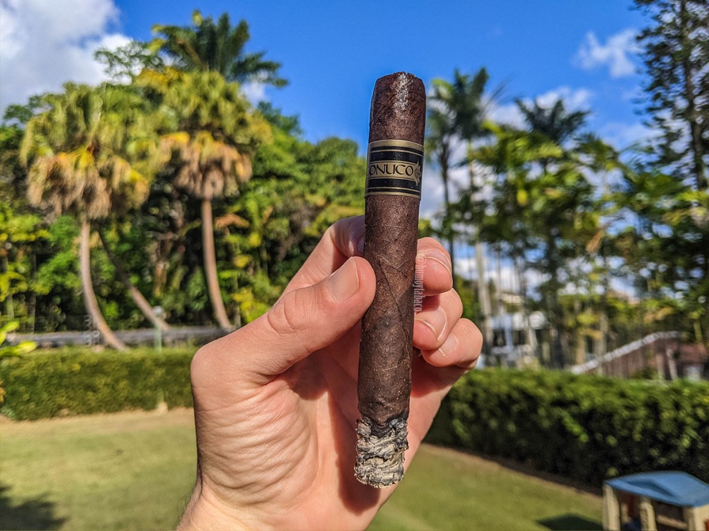 En boca el sabor principalmente dulce, incluse mucho más de lo que esperaría, pero ahí juega un poco ese tema de su juventud aparente vs. la que afirma tener. También hay sabores de cáscara de naranja, lo que hace que e destilado se sienta ligeramente picante, pero también incluye coco, vainilla y almendras, seguido de notas ligeramente ácidas y herbáceas. Ese sabor de coco es bastante obvio y, confieso, que no me gusta mucho pues me recuerda a rones muy jóvenes y «fiesteros», un carácter que no es propio de un ron de esta edad.
