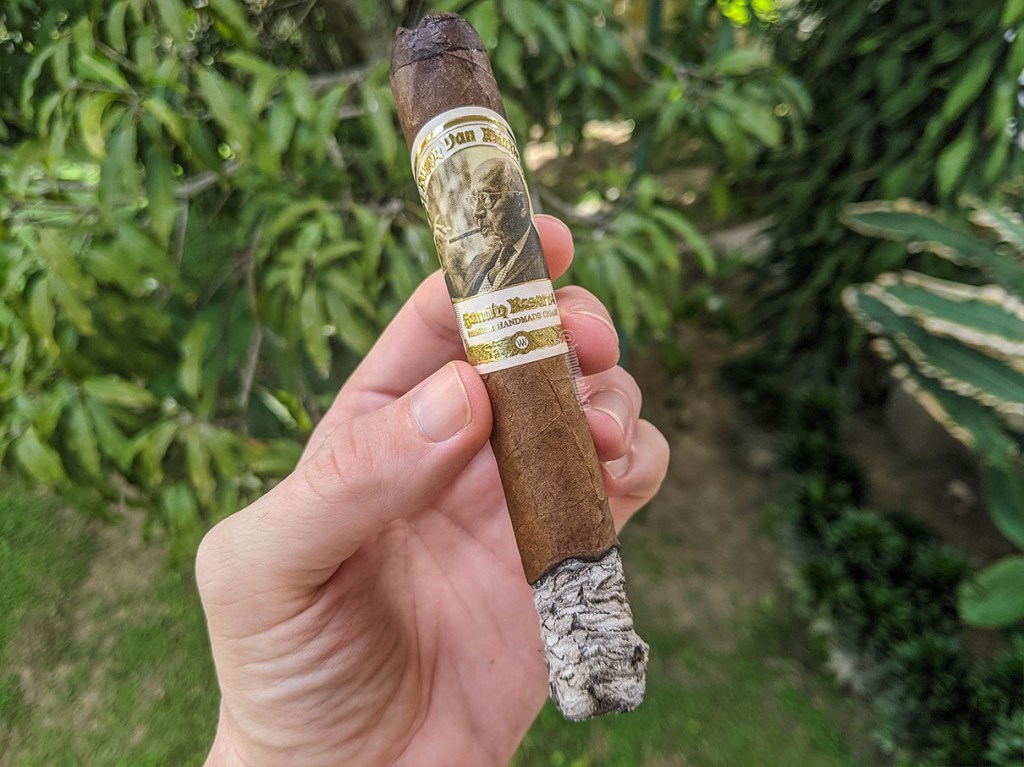 Las primeras caladas del Court Reserve vienen fuertes, incluso más fuertes de lo que creería, como si en frío el cigarro se sentía como un dominicano y en fuego como un nicaragüense, gracias a una fuerte intensidad de pimienta. También le acompañan sabores de tierra mojada y un suave toque de café. La quemada va perfecta, igualmente apoyando mi idea que no es un box press per se, pues rara vez consigo una quemada uniforme con ese tipo de prensados.