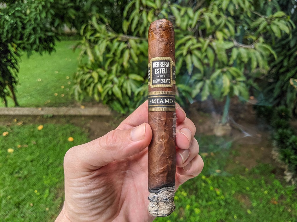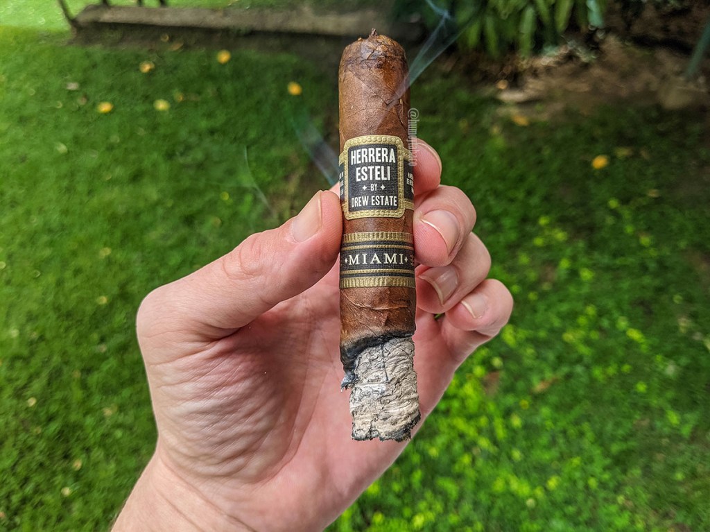 En el segundo tercio hay un sabor de caramelo que toma el protagonismo de la fumada, apoyado en una buena cantidad y densidad de nueces, sabores tostados y un toque sutil de bourbon. La pimienta también se siente más fuerte, aunque mantiene la intensidad. Me sigue llamando la atención cuánto se parece a un habano en la anilla y es quizá lo que me generó una cierta aversión al cigarro antes de encenderlo, pero desde la primera calada es obvio que no es cubano, pero en el buen sentido.