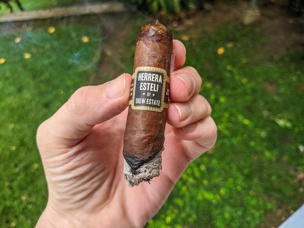El anillo de combustión se comporta bastante bien durante el resto de la fumada, aunque en el último tercio al cigarro le parecía costar mantenerse encendido, no porque se apagara ni porque necesitara retoques, sino más bien porque no soltaba casi humo cuando estaba en el cenicero. Pero al ponerlo entre los labios siempre dejaba fumarse muy bien. Los sabores en el último tercio son más escasos, destacando nuevamente esa sensación seca en las últimas caladas, pero también con sabores de madera como predominantes y algo de caramelo y nueces de fondo. Para ser un cigarro de estas dimensiones me asombró que la fumada me tomara una hora y 50 minutos, pero realmente lo disfruté.