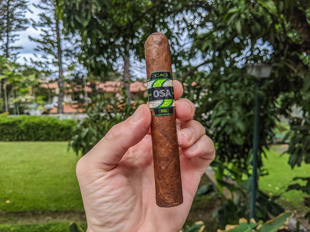 Hace un poco más de cinco años, cuando empecé a fumar, hice una pequeña lista de los cigarros que me llamaban la atención. Habían cigarros de todo tipo y eventualmente fui consiguiendo varios, pero también dejé la lista guardada y fui comprando otros, mientras que algunos nunca los conseguí. El pasado noviembre, mientras visitaba Madrid, conseguí este CAO en la Cava Magallanes a un excelente precio (alrededor de $6), así que decidí incluirlo en la compra. Viendo un poco mis reseñas, me doy cuenta que es el primer CAO que reseño en más de un año, siendo en febrero de 2019 la última vez. El OSA SOL es el primer lanzamiento de la marca luego que fuese comprada por General Cigar, y tiene capa Olancho San Agustín (por sus siglas es el OSA).