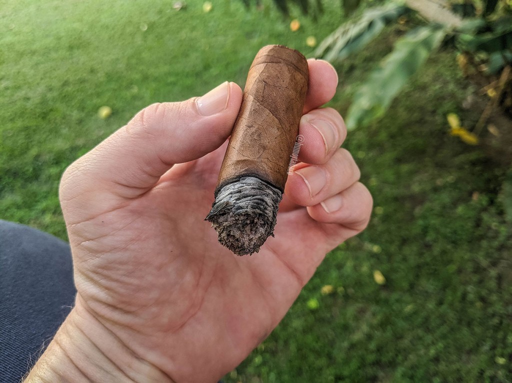 En el último tercio se siente un poco más interesante, destacando sabores a anís y nueces, que acompañan sabores a café y madera, pero casi todos se sienten un poco secos. Aunque la combinación de sabores podría ser interesante, el cigarro no es muy complejo y por ello se sienten planos los sabores, además que esa sensación seca es bastante destacada. Lamentablemente esa carencia de sabores, intensidades y complejidad me pone difícil seguir hablando más del cigarro sin divagar.