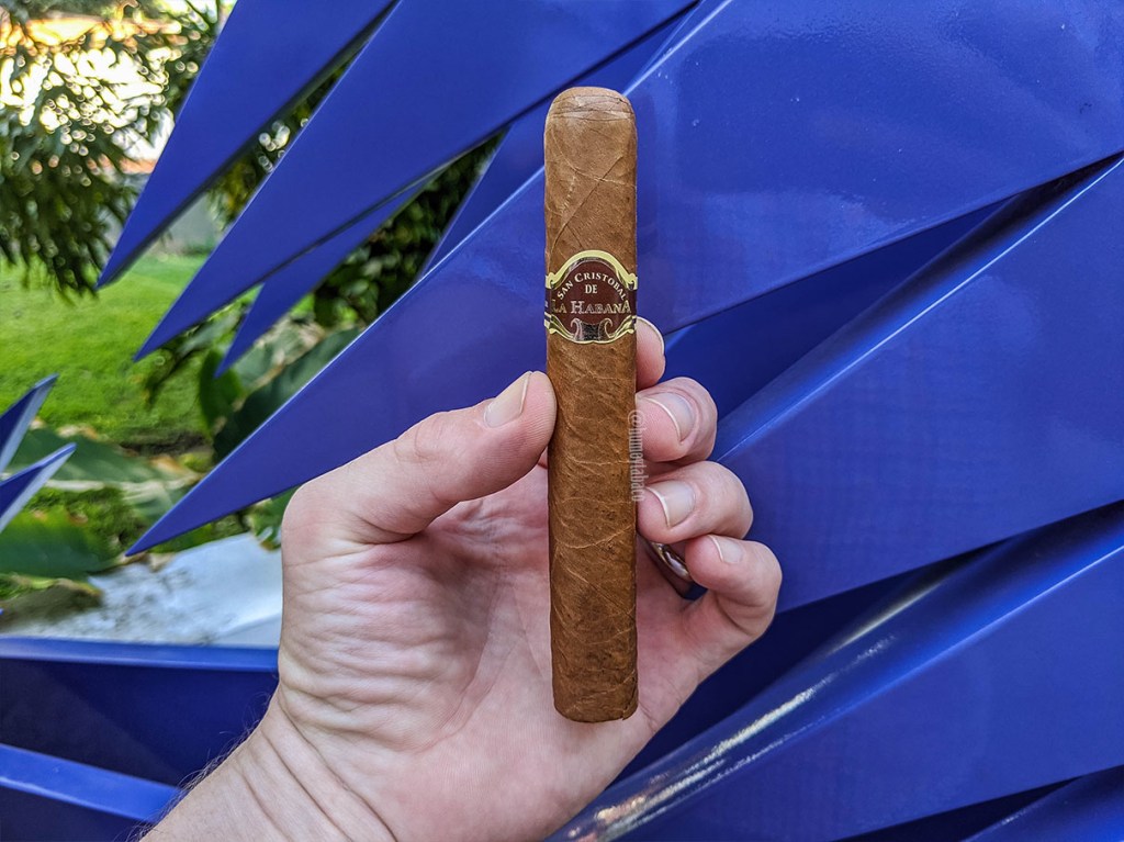 El cigarro me llegó como parte del paquete mensual de Small Batch Cigars para octubre de 2019. Como es el caso con la mayoría de los cigarros Connecticut, la capa de este es brillante y casi dorada, muy lisa y con un pequeño rabo’e cochino en la perilla. Se siente ligeramente firme y tiene aromas de establo, dulce, paja, vainilla, nibs de cacao y canela. Lo pico con la doble hojilla a fin de no perderme nada de la fumada y la calada en frío tiene nueces, madera, crema, cuero, tierra, pan y una nota vegetal suave.