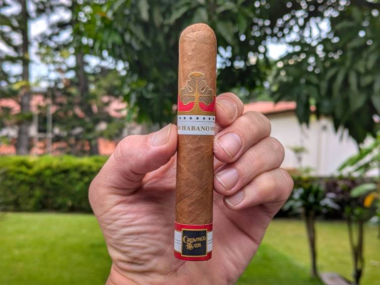 Siendo este el Coroneta Habano, es fabricado en Nicaragua y lleva una capa de origen ecuatoriano, sobre capote y tripa nicaragüenses, con una vitola de dimensiones 5 x 52. En la capa tiene aromas a paja, tierra, establo y cedro, mientras que en el pie, que ya le quité la anilla inferior, tiene aromas de pan dulce, paja y cáscara cítrica. Luego de picarlo, la calada en frío me da notas de cedro y pan.