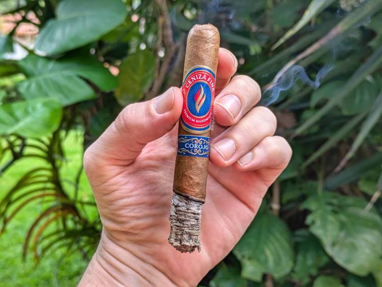 Esas notas florales que impresionaban en el tercio anterior siguen haciéndolo en el último tercio, siendo el sabor más destacado junto con el de cedro, pero en este tercio el sabor de almendras regresa aunque bastante situado entre los sabores secundarios. También hay sabores a pan tostado, granos de café y canela, mientras que el retrogusto sigue manteniendo esa nota de chocolate con leche y la pimienta parece haber desaparecido, aunque el cigarro mantiene su intensidad alta y su fortaleza media y sí hay una sensación picante en boca, pero la atribuyo al hecho de tener la parte encendida del cigarro tan cerca de los labios y que el tiro es relativamente suelto, al menos en este punto. Me toma una hora y 40 minutos fumar el Ceniza Fina Corojo, y al final estaba de buena temperatura y eso que casi me quemo los dedos.