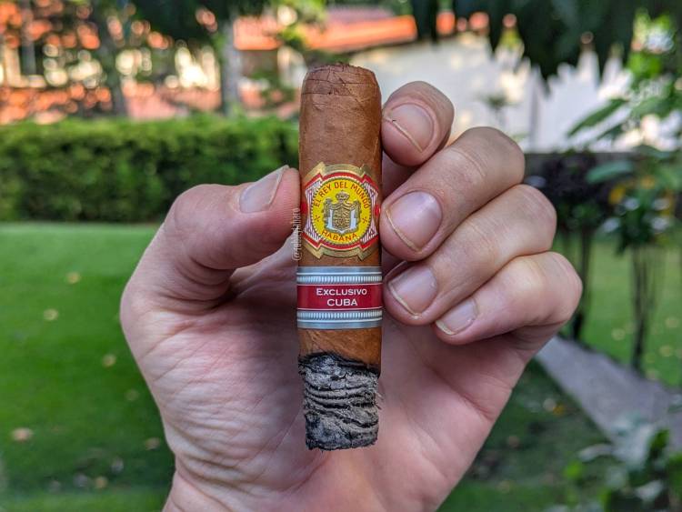 La quemada mejora ligeramente en el último tercio y aunque no hizo falta un tercer corte, la verdad es que lo hago independientemente y siento una mejora en el tiro. Siendo un habano nunca estoy en la búsqueda de un tiro perfecto, estando abierto a que sea algo más apretado de lo que estoy acostumbrado, pero el tercer corte realmente lo puso en donde estoy muy cómodo. Los sabores se sienten menos complejos y más separados, destacando chocolate y nueces como los principales, pero también incluyendo intensidad media de miel, vainilla, madera, castañas y pimienta, mientras que en el retrogusto se sienten más notas de madera, nueces y pimienta. Me toma dos horas y 15 minutos fumar este Cohiba y al final lo dejé en el cenicero cuando me estaba quemando los dedos.