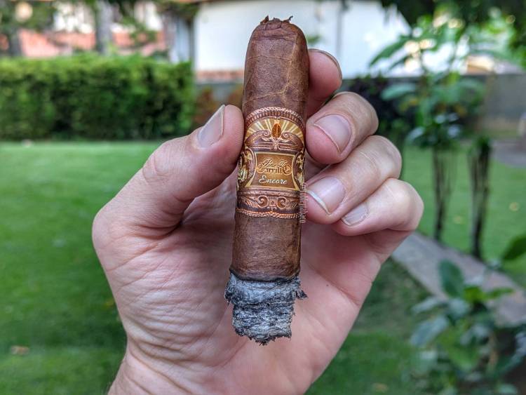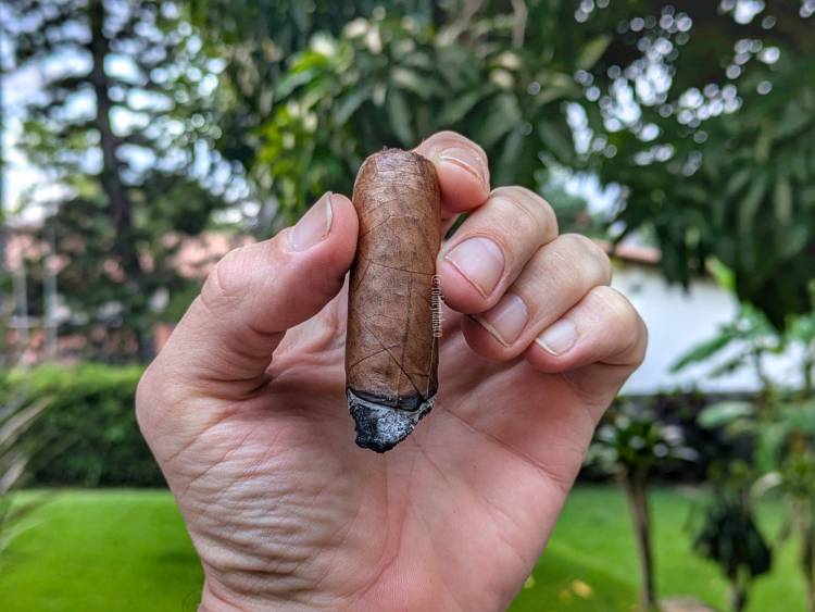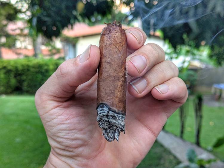 El sabor de almendras sigue llevando el liderato en el último tercio, mientras que el cedro comienza a formar parte de los secundarios. Entre estos de segundo plano encuentro establo, pan, café y cuero, mientras que en el retrogusto la pimienta sigue estando presente y se mantiene como líder en este tramo, mientras que el caramelo se siente más secundario y menos participativo. La quemada sigue igual, con la misma propensión a no mantener columna de ceniza. Me toma una hora y 45 minutos fumar el Hit & Run y en verdad que lo disfruté bastante.