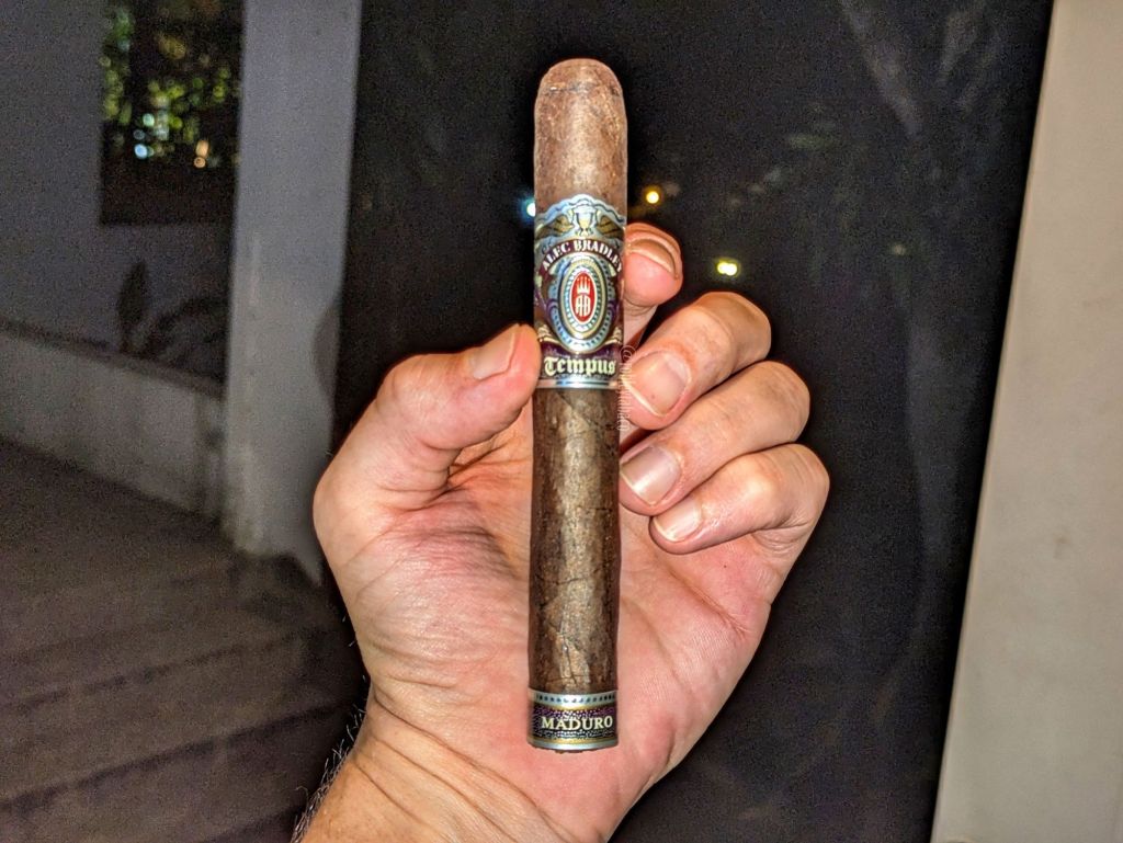 El Tempus Maduro tiene una capa San Andrés mexicana sobre capote hondureño y tripa de Honduras y Nicaragua. La capa es considerablemente oscura y con múltiples venas. Sus aromas son sutiles y casi escasos, adaptándose más a esa noción que tengo de un cigarro vintage, y aromas a chocolate y madera. Lo pico y la calada en frío afortunadamente tiene más aromas, lo que me lleva a pensar que va a ser una experiencia mejor, pues el cigarro es considerablemente duro. Estos aromas incluyen pimienta, chocolate, notas florales, café y algo de establo. Le quito la anilla inferior y proceso a darle fuego.