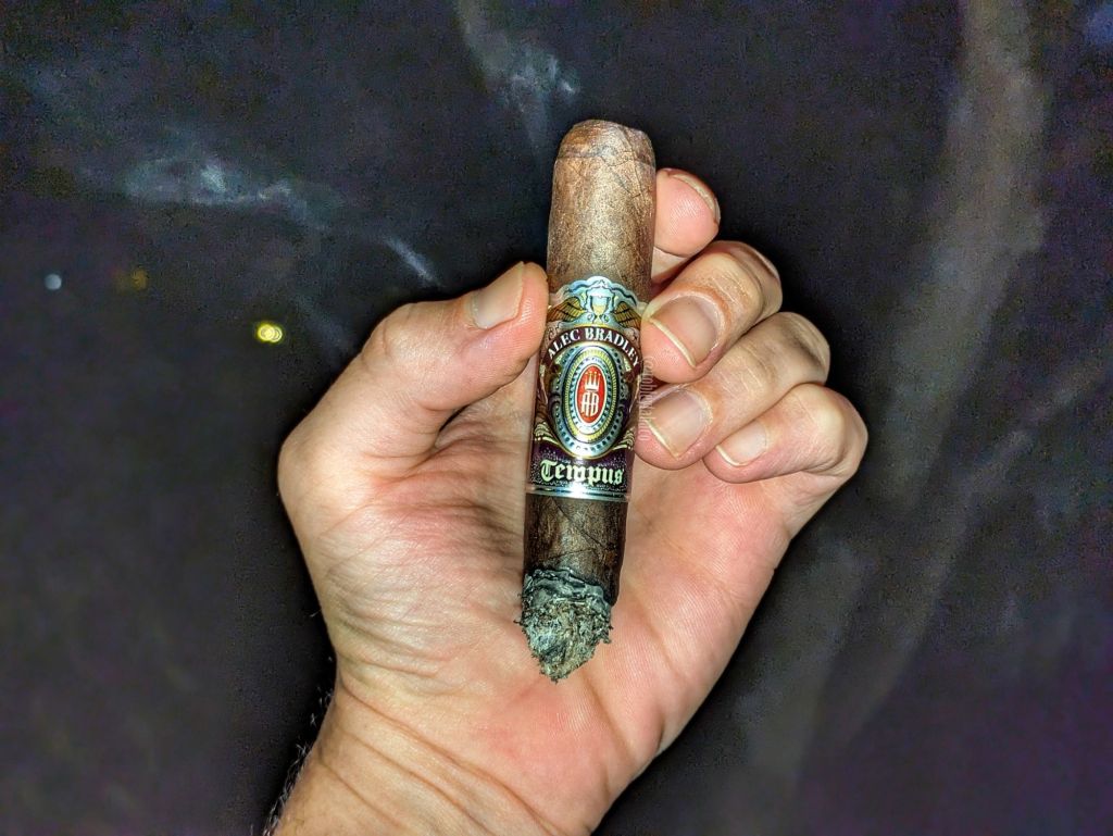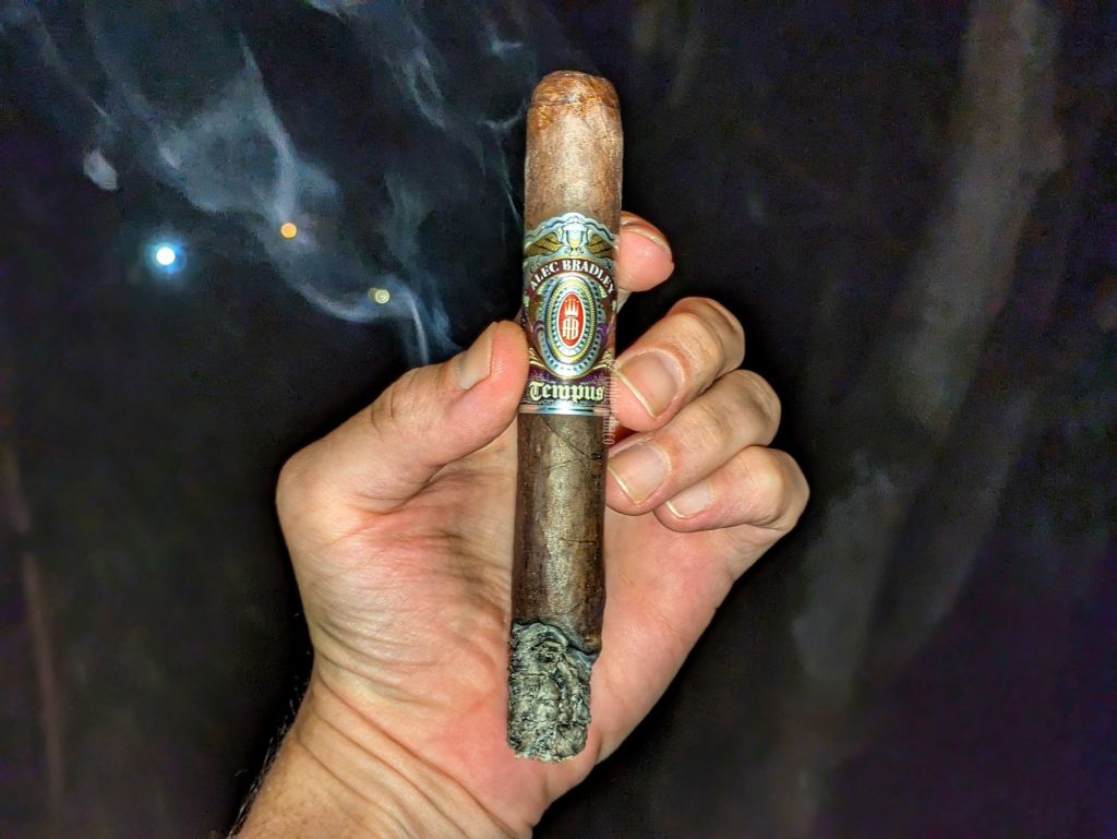 El Tempus Maduro no enciende bien, o mejor dicho, me toma varios intentos y algo más de tiempo de lo habitual lograr que encienda parejo. A lo largo de la quemada se va desviando ligeramente y me obliga a tener el encendedor a mano, evitando lo que creo que va a ser una quemada torcida, pero que en realidad es inevitable también. Afortunadamente hay sabores que me distraen, incluyendo notas dulces de chocolate, caramelo y tierra, con algunas notas secundarias de madera y café. A lo largo del primer tercio ese sabor de caramelo se hace menos intenso y se convierte en miel cuando voy llegando al final de esta primera sección. La intensidad es media-alta, pero la fortaleza es media-baja, por lo que no sé hacia dónde va a ir en el segundo tercio. La quemada es problemática, pero con prestarle atención tengo.